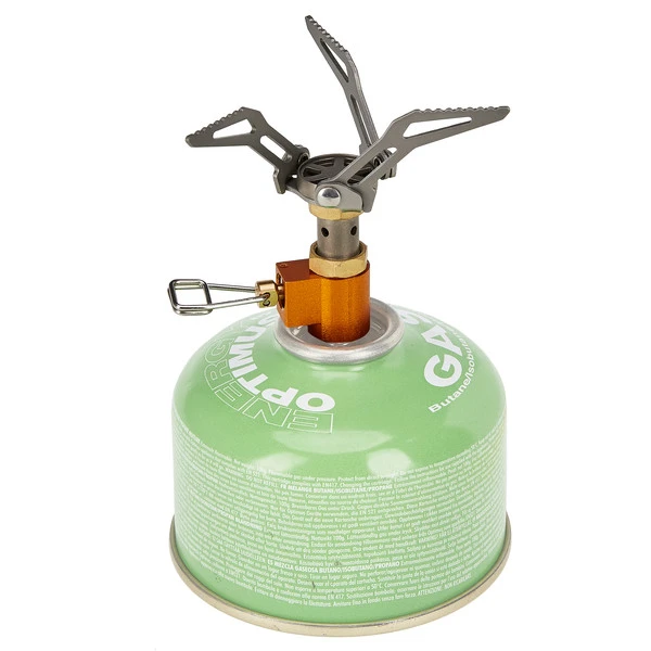 Winziger und sehr leichter Gaskocher für 1-2 Personen, der durch die klappbaren Topfauflagen selbst in der kleinsten Backpacker-Ausrüstung einen Platz findet.