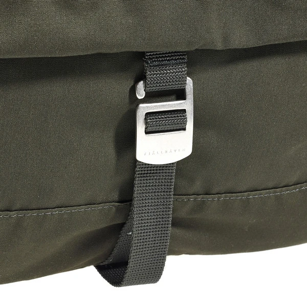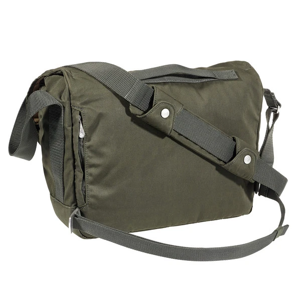 Geschlossen wird die Greenland Shoulder Bag mit einem verdeckten Metallhaken. Auf der schlicht gehaltenen Front befindet sich ein schöner Lederaufnäher mit dem berühmten Fuchslogo. Zur Stabilisierung der Tasche beim Radfahren gibt es einen Bauchgurt, der variabel am Schultergurt im Dreipunkt-System befestigt werden kann.