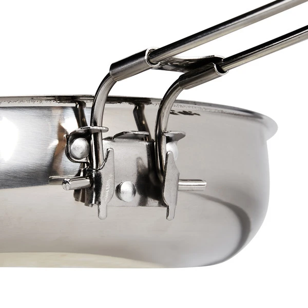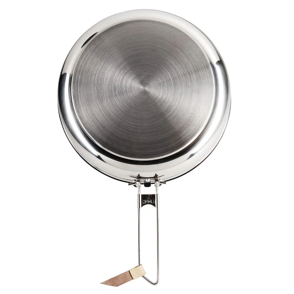 Die große Campfire Frying Pan kannst du auf Gaskochern, Benzinkochern, Multifuelbrennern, über dem Lagerfeuer und selbst auf Induktionsplatten verwenden. Ein Klappgriff ermöglicht ein platzsparendes Verstauen. Du kannst ihn bei Benutzung per Schieberiegel sichern und verhinderst damit ein einklappen bei der Nutzung. Besonders praktisch ist der Schüttrand. So kannst du Soßen zielgenau und tropffrei ausschenken, ohne dass sie an der Außenseite der Pfanne herunterläuft. Die steilen Wände und das Volumen von 2 l ermöglichen dir zudem die Zubereitung von Gemüse, Fleisch und flüssigen Speisen.