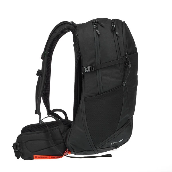 Möglich macht es das belüftete Tragesystem mit regulierbarer Netzspannung. Je nach Tourenart kannst du den Wizard 30+4 körpernaher oder körperferner tragen. Die vorgeformten ErgoShape-Schultergurte sind belüftet und liegen gut an. Der gepolsterte Hüftgurt hat ein RV-Fach für Kleinigkeiten und überträgt die Last gekonnt auf die Hüften.